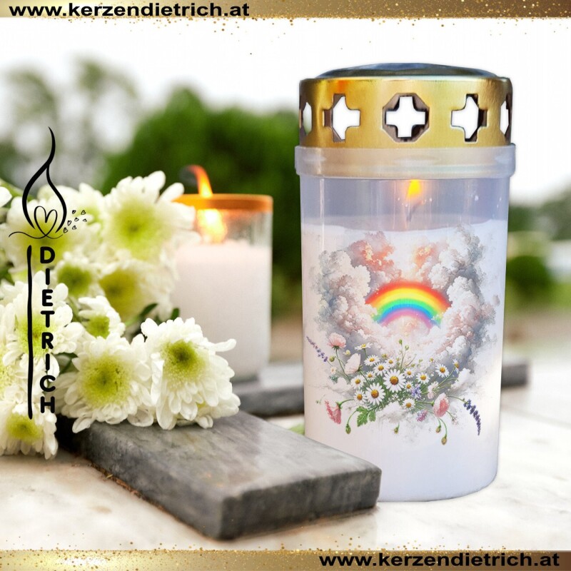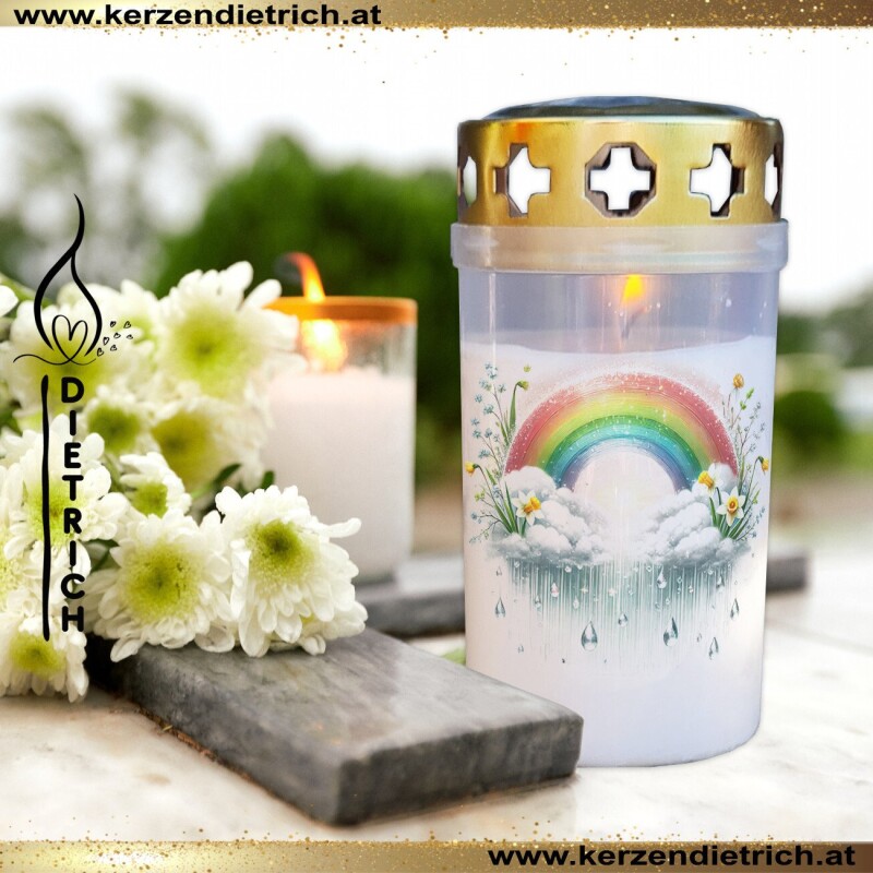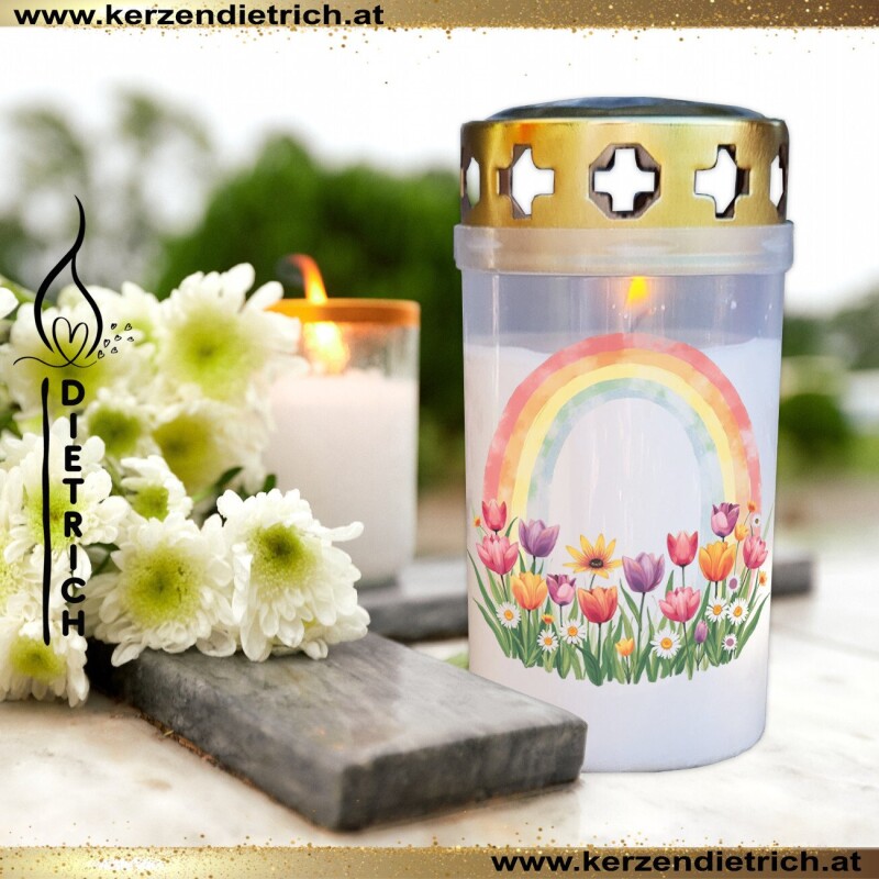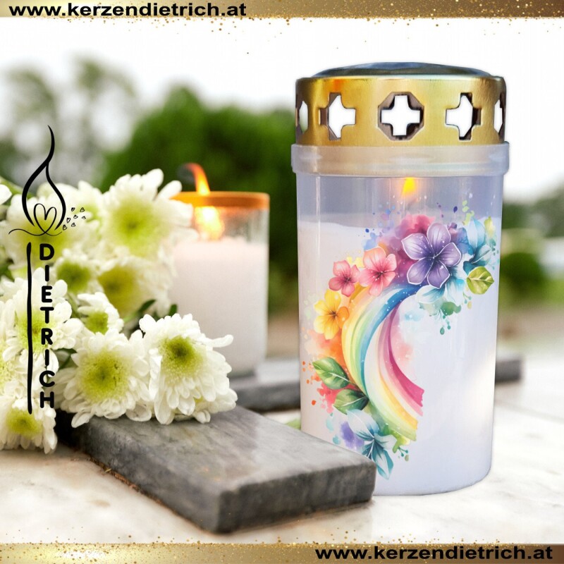 Grablichter mit liebevoll gestalteten Regenbogen-Motiven ♥