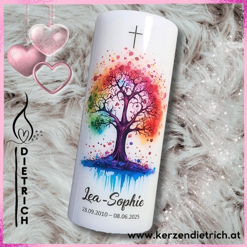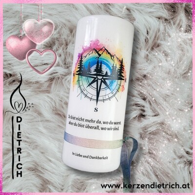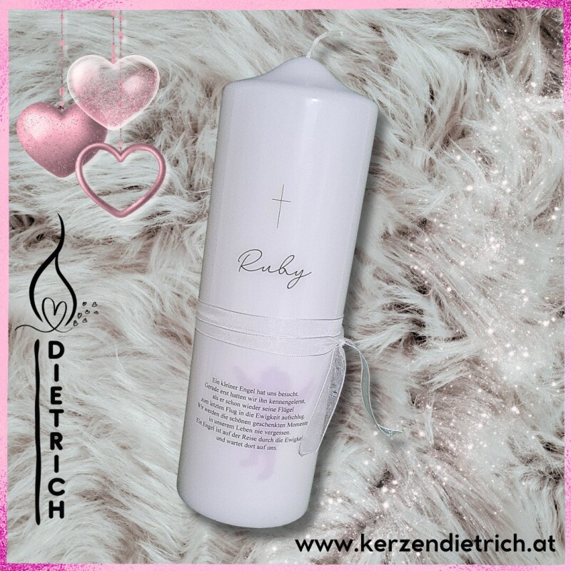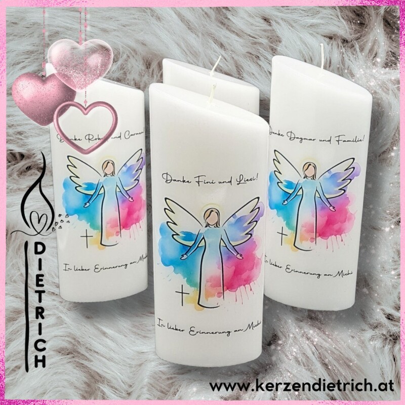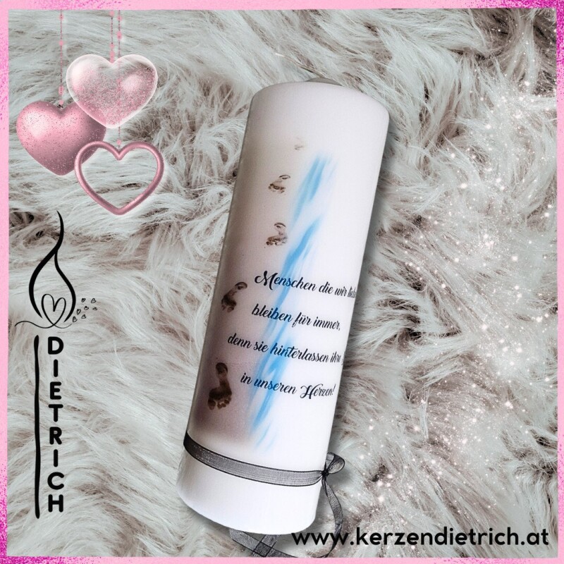 Jede Kerze kann mit Namen und Datum personalisiert werden - dies ist im Preis inkludiert.